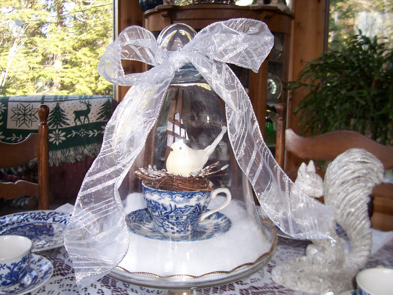I bought the teapot years ago to go with the blue and white tea cups my mom gave me. I was excited to find the squirrel a couple of years ago on a shopping trip.